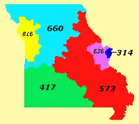 - ↑ (en) « Missouri Area Codes », sur www.areacodehelp.com (consulté le )
