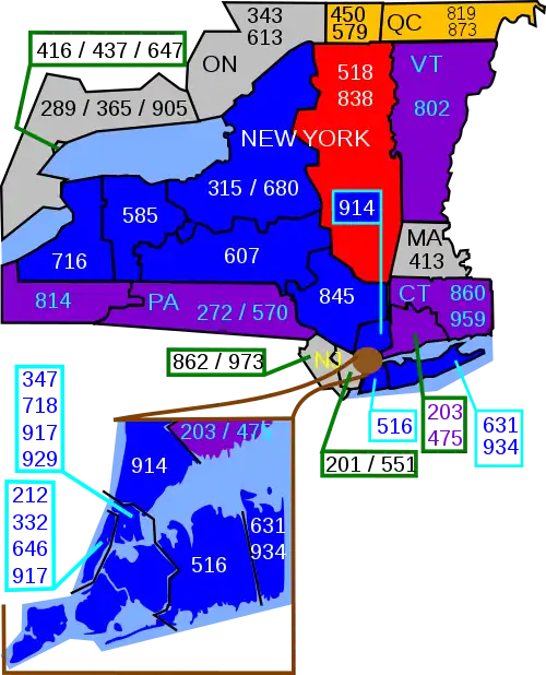 La carte ci-contre indique en rouge le territoire couvert par l'indicatif 518.