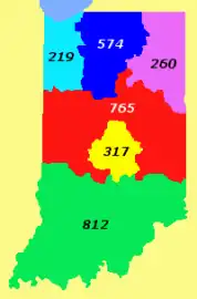 - (en) Cet article est partiellement ou en totalité issu de l’article de Wikipédia en anglais intitulé « Area code 574 » (voir la liste des auteurs).