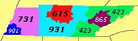 La carte ci-contre indique en rose le territoire couvert par l'indicatif 731.