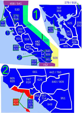 Les indicatifs régionaux 310 et 424 font partie du plan de numérotation nord-américain.