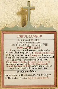 Tableau (en langue bretonne) des indulgences accordées en 1830 par le pape Pie VIII aux fidèles venant prier à la chapelle Saint-Sauveur de Coadry.