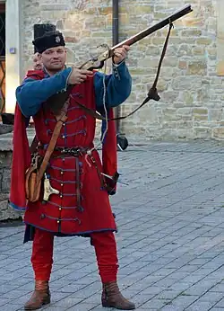 Le mot hajduk est entré dans la langue polonaise à partir du hongrois à la fin du XVIe siècle. Il s'agissait initialement d'un terme familier désignant le style de fantassin d'inspiration hongroise ou turco-balkanique introduit par le roi Étienne Báthory, lui-même hongrois, dans les années 1570, et qui constituait la base de l'infanterie polonaise des années 1570 jusqu'aux années 1630. Fait inhabituel à cette époque, les hajduks polono-lituaniens portaient des uniformes, généralement en tissu de laine gris-bleu, avec un col et des poignets rouges. Leur arme principale était une arme à mèche de petit calibre, appelée arquebuse. Pour le combat rapproché, ils portaient également un sabre lourd, capable de couper les têtes des piques et des armes d'hast ennemies.