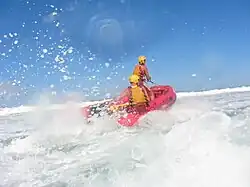 Durant une opération de sauvetage, le pilote doit être attentif aux obstacles à fleur d'eau (rochers et nageurs), et prêter attention à la puissance des vagues. Le second sauveteur contribue à équilibrer le bateau et peut faire office de vigie pour prévenir le pilote de tout danger imminent. Le bateau étant très léger, le positionnement et la coordination des sauveteurs sont essentiels pour l'équilibre général de l'IRB, a fortiori lors des manœuvres de virage et de franchissement de vagues, de shore-break.