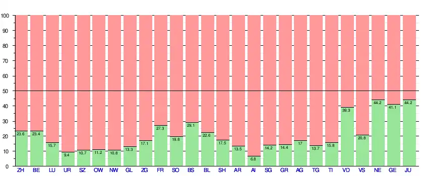 Le , l'initiative est refusée à l'unanimité des cantons et par 76,8 % des suffrages exprimés, avec une participation de 55,8 %[13]. Le tableau ci-dessous détaille les résultats par canton[14] :