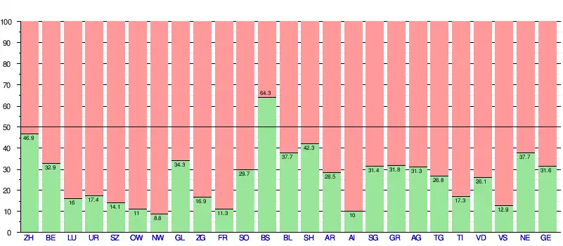 Soumise à la votation le , l'initiative est refusée par 19 5/2 cantons, soit tous à l'exception de Bâle-Ville[NB 2], et par 67,3 % des suffrages exprimés[6]. Le tableau ci-dessous détaille les résultats par cantons[7] :