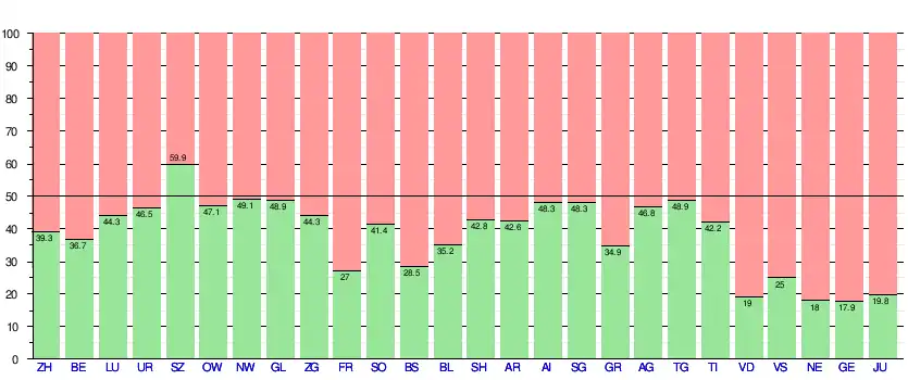 Soumise à la votation le , l'initiative est refusée par 19 6/2 cantons[NB 2] (soit tous à l'exception du canton de Schwytz) et par 63,8 % des suffrages exprimés[7]. Le tableau ci-dessous détaille les résultats par cantons[8] :