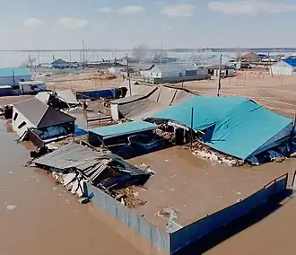 La fonte des neiges entraîne des crues[2] qui provoquent notamment la rupture du barrage d'Orsk[3]. L'état d'urgence fédéral est déclaré dans l'oblast d'Orenbourg (Russie)[4]. Des dizaines de milliers de personnes sont évacuées[5], dont plus de 16 000 au Kazakhstan[6]. En Russie, près de 18 000 maisons sont inondées[7]. Au Kazakhstan, les inondations font au moins 7 morts et 2 disparus[7].