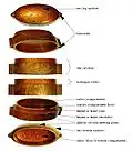Ils sont formés de compartiments s'emboitant les uns sur les autres. Le nombre de compartiments peut varier de 1 à 7, plus le couvercle[4]. Les différents composants sont réunis entre eux par une cordelette. Cette dernière coulisse dans des canaux (himotoshi) situés de part et d'autre de chaque compartiment. La cordelette est maintenue tendue par un « clip » (ojime) pour fixer les compartiments entre eux. Lorsque le compartiment est unique, on les appelle des tonkotsu.