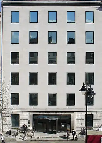 Le siège de l'Institute of Physics est actuellement situé à 76 Portland Place à Londres ; sa maison d'édition se trouve à Bristol.