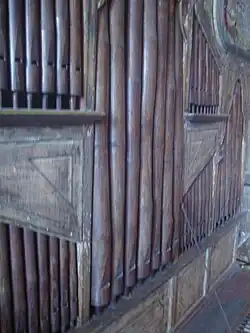 En Indonésie et aux Philippines, le bambou a été utilisé pour fabriquer divers types d'instruments de musique, tels que kulintang , angklung et bumbong. Le bambou est également utilisé pour fabriquer des tambours à fente. Les banda kawayan (orchestres de bambou) traditionnels des Philippines utilisent plusieurs instruments de musique en bambou, dont marimbas, angklungs, flûtes de Pan et bumbongs, ainsi que des versions en bambou d'instruments occidentaux, tels que clarinettes, saxophones et tubas[2]. Aux Philippines, l'orgue de bambou de Las Piñas a ses tuyaux en chaumes de bambou. Le stick Chapman, instrument à cordes amplifié moderne, est également construit à l'aide de bambou. Le khên (également orthographié khene ( lao : ແຄນ, thaï : แคน) est un orgue à bouche d'origine laotienne dont les tuyaux, généralement en bambou, sont reliés à un petit réservoir creusé dans un bois dur dans lequel l'air est soufflé, créant un son semblable à celui du violon.