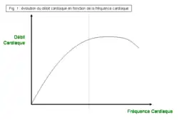 Lorsque la fréquence cardiaque augmente, le débit cardiaque augmente. Ce phénomène devient cependant autolimitant (cf. figure 1). En effet, la durée de la systole étant pratiquement constante, une augmentation de fréquence cardiaque se fait toujours au détriment de la durée de la diastole. Lorsque la fréquence cardiaque devient excessive, le raccourcissement de la diastole entraîne une diminution du remplissage ventriculaire, ainsi qu’une baisse de l’irrigation du myocarde, à l’origine d’une baisse du volume d’éjection systolique.