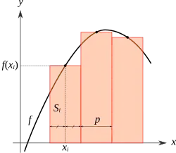 Les méthodes numériques consistent à prendre une suite de valeurs (xi, f(xi)), les valeurs des xi étant si possible équidistantes : xi+1 – xi = p. On peut ensuite appliquer différentes méthodes, dont les deux principales consistent à faire la somme d'aires Si :