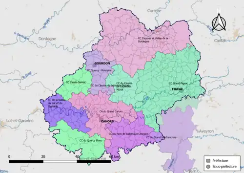 | CC Quercy-Bouriane | 244600482 | 20 | 10 047 (2021[5]) | 308,40 | 33 | Gourdon | Jean-Marie Courtin | ||
