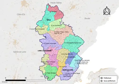 | CC Jura Nord | 243900560 | 32 | 11 783 (2021[12]) | 264,10 | 45 | Dampierre | Gérôme Fassenet | DVD | ||
