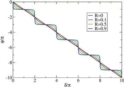 La réflexion de l'ensemble de l'énergie induite se traduit par , indépendamment de . La forte dépendance du déphasage avec la longueur d'onde est caractérisée par une relation non linéaire. Pour illustrer cet effet, nous considérerons le cas où est réel, avec , étant le coefficient de réflexion en intensité de la première face. À partir de la définition