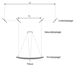 Les deux rayons sont formés à partir de la lumière d'une étoile par deux fentes écartées d'une distance . Chaque rayon est renvoyé sur le miroir primaire du télescope via deux réflecteurs allongeant ou raccourcissant leur chemin optique ; les rayons repartent du miroir principal vers un miroir condensateur, et de là concourent au foyer du miroir principal.
