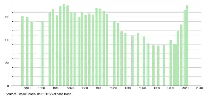 - ↑ Fiches Insee - Populations de référence de la commune pour les années 2006, 2007, 2008, 2009, 2010, 2011, 2012, 2013, 2014, 2015, 2016, 2017, 2018, 2019, 2020, 2021 et 2022.