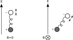 Lorsqu'on introduit dans le matériau un champ magnétique, la force de Lorentz que subit le dipôle se voit ajouter un terme qui dépend du champ magnétique.