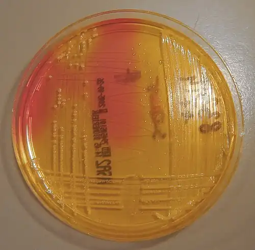 Une fois l'isolement effectué et incubé, des colonies bactériennes apparaissent; elles sont d'aspect M, R ou S[4]. Outre la macroscopique, les variations de couleur du milieu ou des colonies permettent de déterminer des caractères biochimiques des microorganismes des colonies.