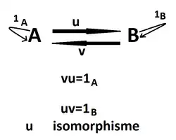 - Cette flèche notée est aussi un isomorphisme qui est dit inverse ou réciproque de u.