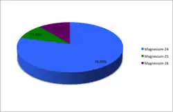 Le magnésium naturel est constitué des trois isotopes stables 24Mg, 25Mg et 26Mg, le premier étant majoritaire. Tous trois sont primordiaux, mais 26Mg est également radiogénique, produit de la désintégration radioactive de 26Al (primordial ou cosmogénique).