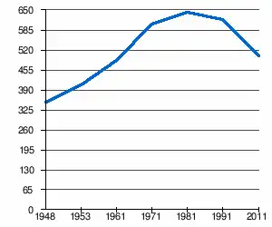 - 1 2 (sq) « Évolution de la population 1948-2011 », sur pop-stat.mashke.org (consulté le ).