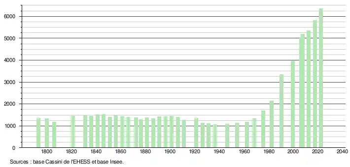 - ↑ Fiches Insee - Populations de référence de la commune pour les années 2006, 2007, 2008, 2009, 2010, 2011, 2012, 2013, 2014, 2015, 2016, 2017, 2018, 2019, 2020, 2021 et 2022.