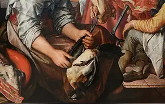 - Scène de cuisine, avec Jésus dans la maison de Marthe et Marie à l'arrière-plan, autre tableau de Bueckelaer sur le sujet.