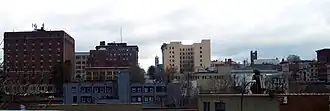 Le centre-ville de Jamestown vu depuis la rue Washington.
