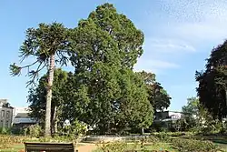 En plus es différents rosiers, on y trouve un séquoia géant (Sequoiadendron giganteum), des hydrangéas (hortensias), des euphorbes, des marronniers, des magnolias, des arbres de Judée, des cèdres de l'Atlas, deux araucaria, des palmiers et d'autres plantes exotiques rapportées de ses voyages par le capitaine Pierre Vittu de Kerraoul qui fut le dernier propriétaire privé de ce jardin.