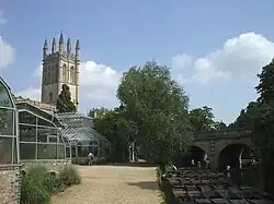 Vue du jardin botanique de l'université d'Oxford, avec en arrière-plan la grande tour de Magdalen College | |