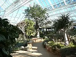 - la partie centrale de la serre est réservée aux plantes des zones désertiques et arides (Karoo, Namaqualand ou Namib) et compte toutes sortes de plantes xérophytes : aloès, euphorbes, pachypedium, crassula et autres succulentes. Au centre de cette partie siège un baobab ;