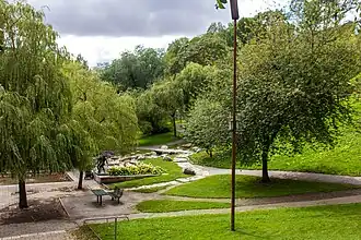 Au nord du grand étang se trouve le bâtiment principal monumental de la bibliothèque municipale de Stockholm, construit en 1928 par l'architecte Gunnar Asplund. Le bâtiment a été financé grâce à d'importants dons, notamment de la fondation de Knut et Alice Wallenberg, et appartient aujourd'hui à la ville de Stockholm.