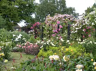 - une roseraie montrant les différents styles, genres et formes de plantation,
