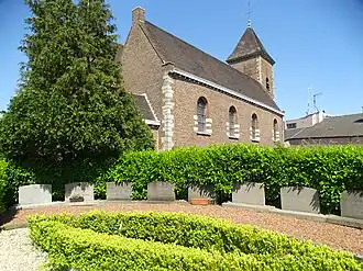 Le Jardin des Poètes, avec en arrière-plan l'église Saint-Aubert.