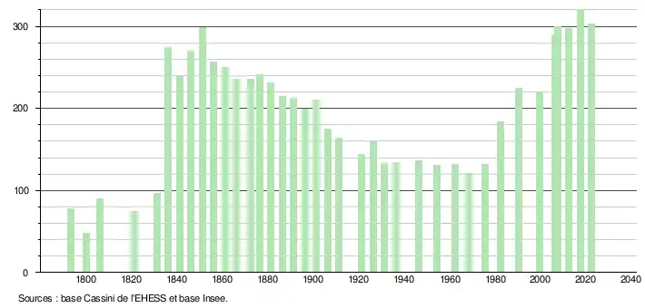 - ↑ Fiches Insee - Populations de référence de la commune pour les années 2006, 2007, 2008, 2009, 2010, 2011, 2012, 2013, 2014, 2015, 2016, 2017, 2018, 2019, 2020, 2021 et 2022.