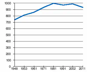 | 737 | 810 | 858 | 935 | 999 | 970 | 989[2] | 939[1] |