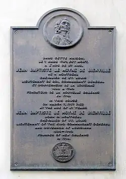 Jean-Baptiste Le Moyne de Bienville meurt le au 17 rue Vivienne à Paris et ses obsèques sont célébrées dans l'église Saint-Eustache de Paris[3]. Une plaque commémorative a été installée sur la façade de l'immeuble où est mort le fondateur de La Nouvelle-Orléans et où on peut lire ce texte : « Dans cette maison, le 7 mars 1767, est mort, à l'âge de 87 ans, Jean-Baptiste Le Moyne de Bienville, né à Montréal, chevalier de Saint-Louis, lieutenant du Roi, commandant général et gouverneur de la Louisiane, 1699 à 1743, fondateur de la Nouvelle-Orléans en 1718. Orleans Parish Landmarks Commission. »