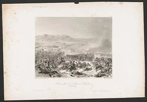 - Bataille du Mont-Thabor, , gravure d'après les tableaux de Léon Cogniet et Henri Félix Emmanuel Philippoteaux, ainsi que le dessin d'Édouard Girardet[9].