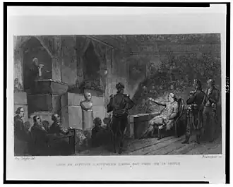 - Louis XVI à l'assemblée de la Convention Nationale, salle des Manèges du palais des Tuileries, , estampe d'après Ary Scheffer[22].