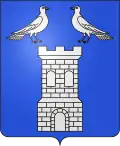 D'azur à la tour, sommée de deux colombes affrontées, le tout d'argent[1]. |