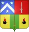 Coupé ; le premier parti, à dextre d'azur au chevron d'argent, accompagné de trois étoiles du même, à sénestre de gueules au signe des barons tirés de l'armée ; le deuxième d'or, au pal de sinople, chargé d'une épée haute du champ et accompagné de deux grenades éclatant de sable, enflammées de gueules - Livrées : les couleurs de l'écu ; le verd en bordure seulement.[3],. |