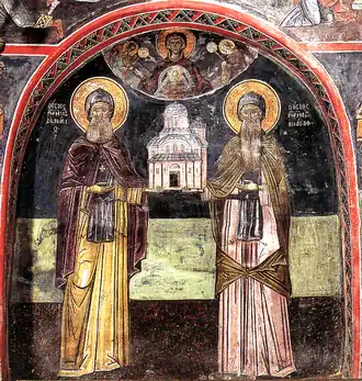 Fresque représentant Jovan et Athanasios des Météores (Megala Meteora, Grèce)