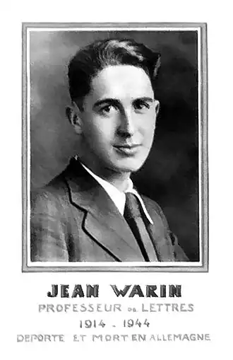 Jean Warin, né le 17 septembre 1914 à Boulogne-sur-Mer (Pas-de-Calais) et mort le 14 décembre 1944 dans le camp de concentration de Neuengamme en Allemagne, est un professeur agrégé de lettres et un résistant français de la première heure[1].