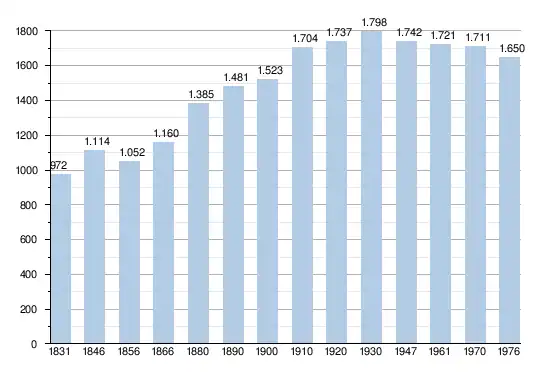 - Sources : INS, Rem. : 1831 jusqu'en 1970 = recensements, 1976= nombre d'habitants au 31 décembre[5].