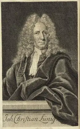 Johann Christian Lünig est un historien et publiciste allemand, né à Schwalenberg (Lippe) en 1662, mort en 1740.