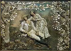 - ↑ Paire de reliefs représentant un joueur de flute et un joueur de vielle à roue, sur christies.com