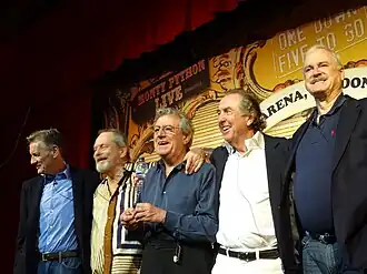 En , la troupe des Monty Python, à l'exception de Graham Chapman décédé en 1989, se reforme le temps de dix représentations à l'O2 Arena de Londres, pour un dernier spectacle nommé Monty Python Live (Mostly) : One Down, Five To Go (en)[16].