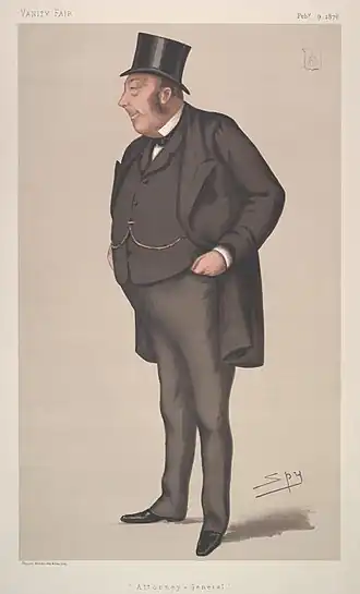 Il est le candidat conservateur lors d'une élection partielle à Preston en 1872, l'une des premières tenues après que le Ballot Act de 1872 exige l'utilisation d'un scrutin secret. Il est député de Preston jusqu'à sa mort en 1882. Il devient solliciteur général dans le gouvernement de Benjamin Disraeli en 1874 et est fait chevalier. Il remplace Sir Richard Baggallay au poste de procureur général en 1875, conservant son poste jusqu'à ce que les libéraux remportent les élections générales de 1880.